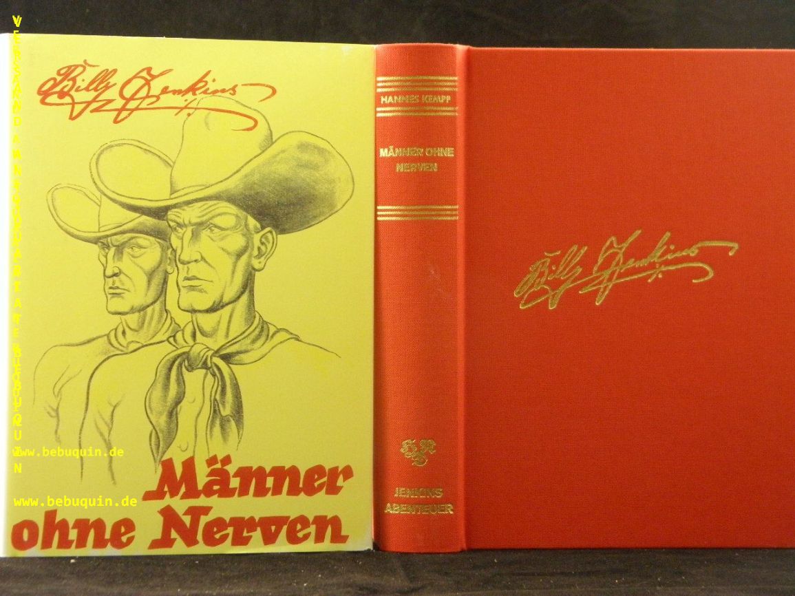 BILLY JENKINS.– KEMPP, Hannes: Männer ohne Nerven. Reprint der Ausgabe: Leipzig (Dietsch), 1937. 288 S. rotes OLn mit goldgeprägter Signatur und OUmschl. neuwertig. = Bücher der Spannung, Nr. 28. sehr seltener Reprint des im Original schwer zu findenden Titels.