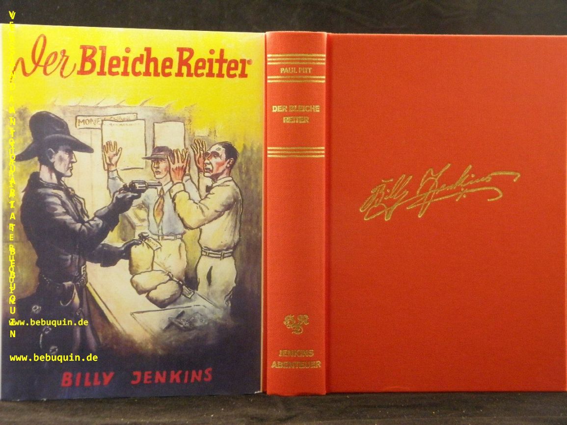 BILLY JENKINS.– PITT, Paul: Der bleiche Reiter. Reprint der Ausgabe: Leipzig (Dietsch), 1938. 282 (3) S. rotes OLn mit goldgeprägter Signatur und OUmschl. neuwertig. = Bücher der Spannung, Nr. 44. sehr seltener Reprint des im Original unauffindbaren Titels.