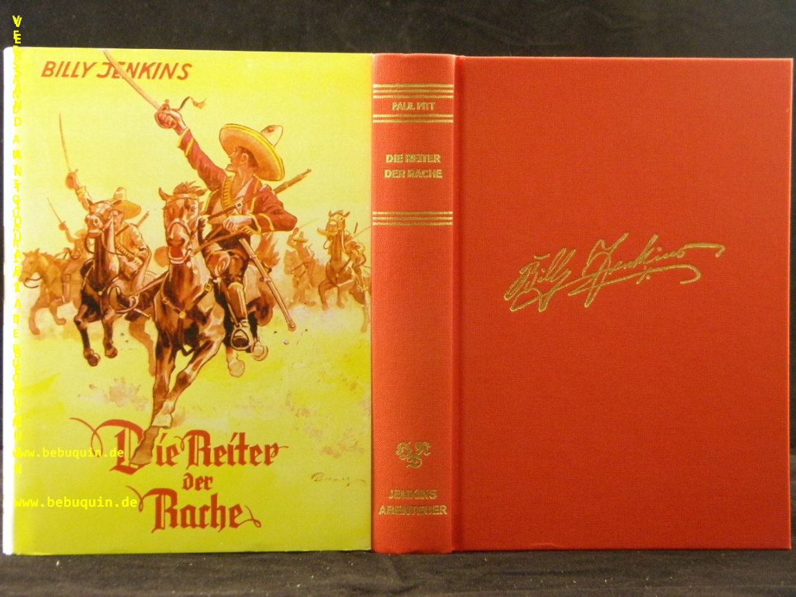 BILLY JENKINS.– PITT, Paul: Die Reiter der Rache. Reprint der Ausgabe: Leipzig (Dietsch), 1938. 288 S. rotes OLn mit goldgeprägter Signatur und OUmschl. neuwertig. = Bücher der Spannung, Nr. 39. sehr seltener Reprint des im Original unauffindbaren Titels.
