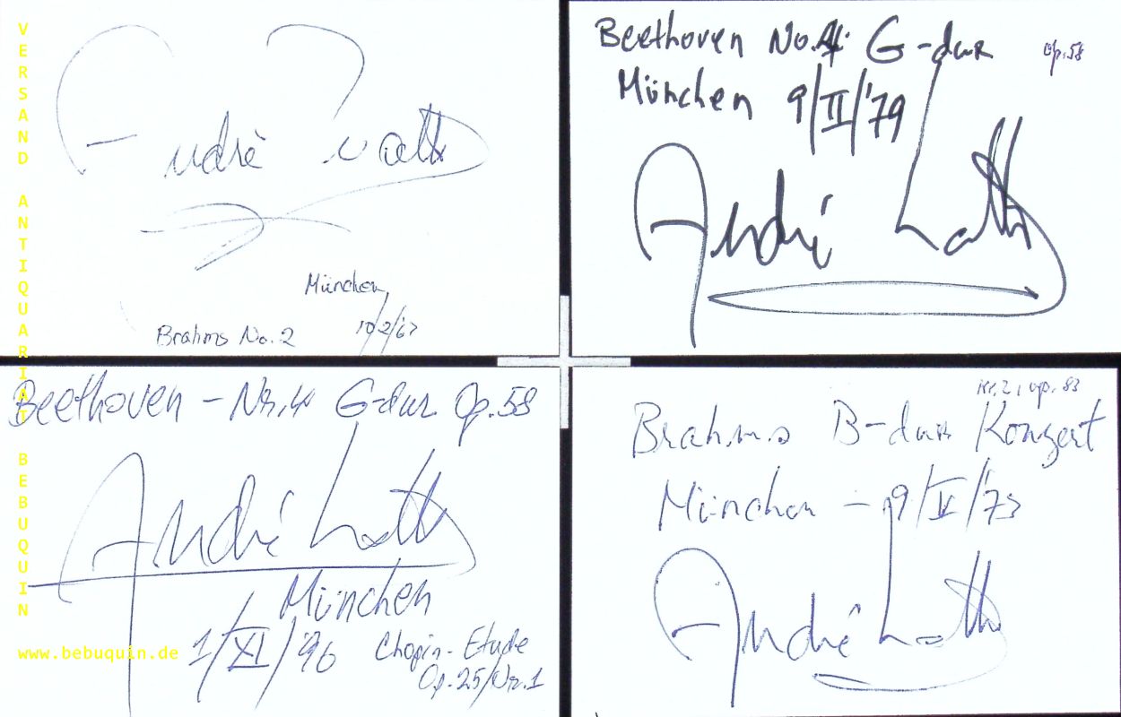 WATTS, André (Pianist): 10 eigenhändig signierte und datierte Autogrammkarten. München, 1967 – 1998. 8 x 12,5 cm. 10 Karteikarten. André Watts (* 20. Juni 1946 in Nürnberg) ist ein klassischer Pianist und Professor an der Jacobs School of Music der Indiana University Bloomington. (Wikipedia)