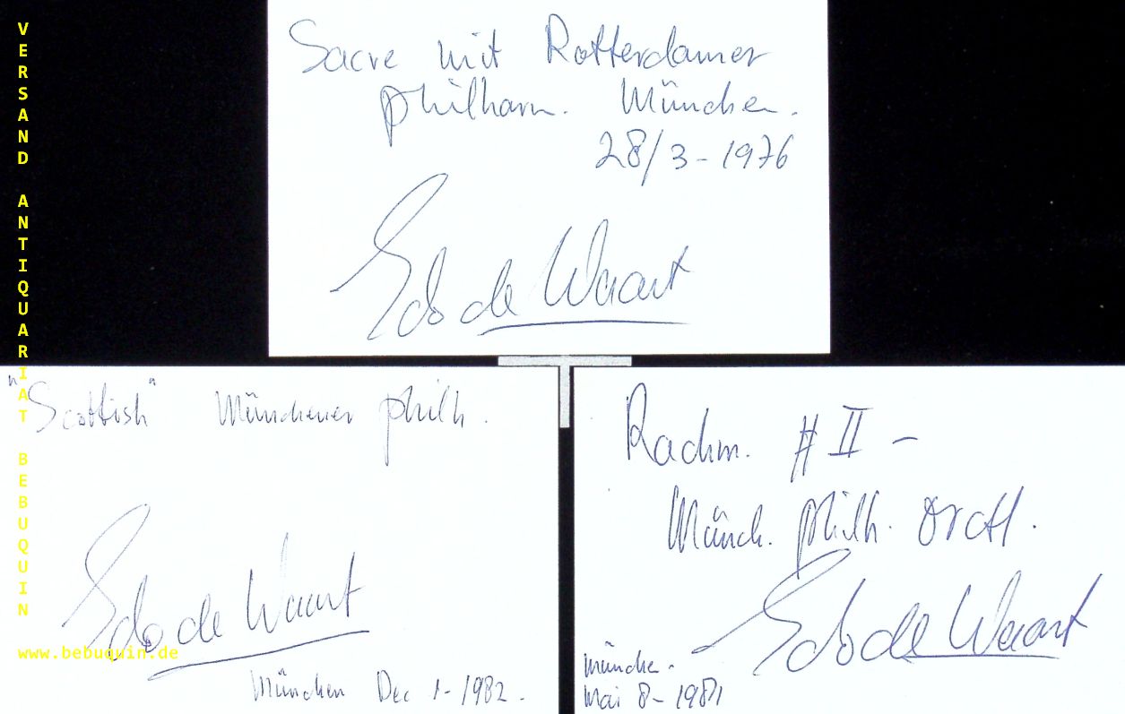 DE WAART, 3 eigenhändig signierte und datierte Autogrammkarten.