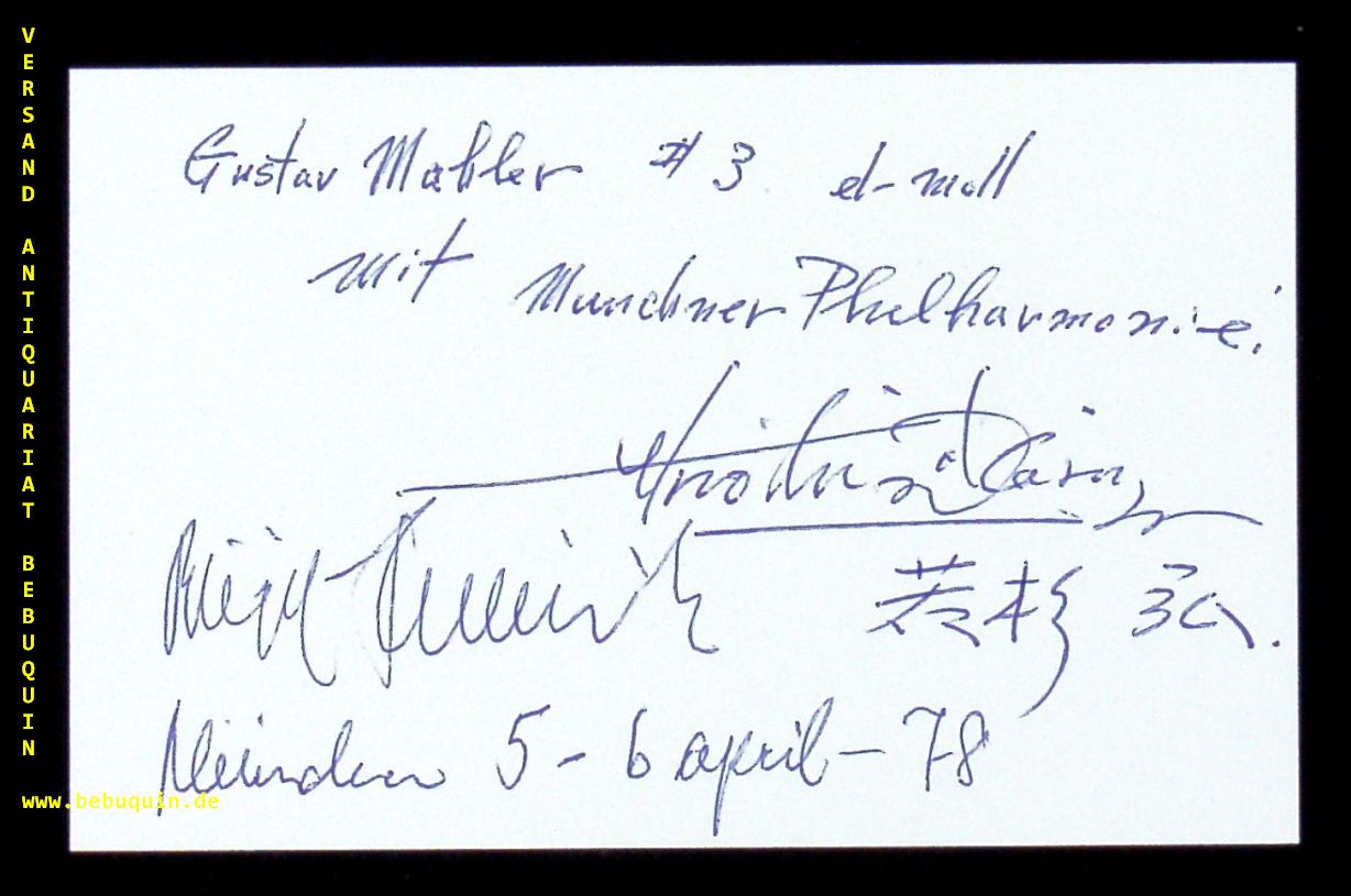 FINNILÄ, Birgit (Alt) + WAKASUGI, Hiroshi (Dirigent): eigenhändig von beiden signierte und datierte Autogrammkarte. München (Philharmonie), 5.4.1976. 8 x 12,5 cm. Karteikarte. Birgit Finnilä (born 20 January 1931) is a Swedish contralto and opera singer. Hiroshi Wakasugi (* 31. Mai 1935 in New York; † 21. Juli 2009 in Tokio) war ein japanischer Dirigent. Wakasugi führte viele der wichtigsten europäischen Opern zum ersten Mal in Japan auf und wurde dafür mehrfach ausgezeichnet. (Wikipedia)