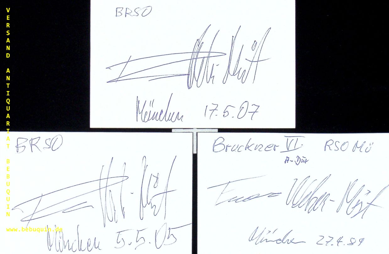 WELSER-MÖST, Franz (Dirigent): 2 eigenhändig signierte und datierte Autogrammkarten. München (Philharmonie), 1989 – 2007. 8 x 12,5 cm. Karteikarten. Franz Welser-Möst (eigentlich: Franz Leopold Maria Möst, * 16. August 1960 in Linz, Oberösterreich) ist ein österreichischer Dirigent. Er ist seit 2002 Musikdirektor des Cleveland Orchestra. (Wikipedia)
