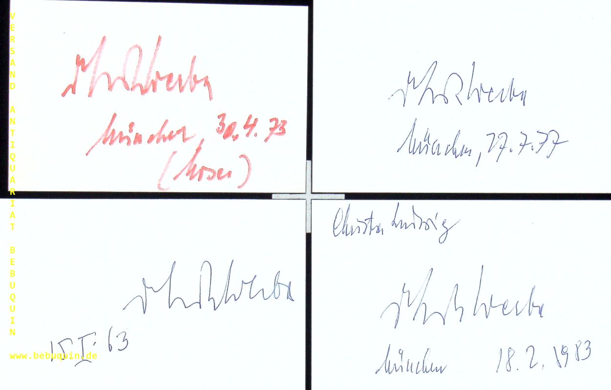 WERBA, 4 eigenhändig signierte und datierte Autogrammkarten.