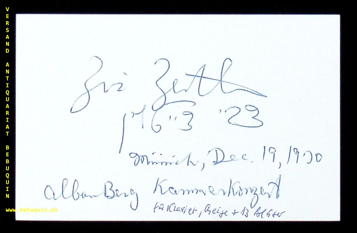 ZEITLIN, Evi (Violinist): eigenhändig signierte und datierte Autogrammkarte. München (Philharmonie), 19.12.1990. 8 x 12,5 cm. Karteikarten.
