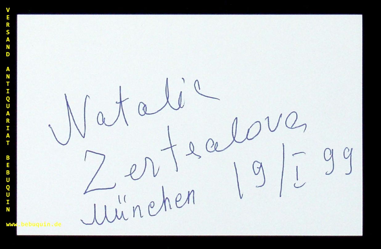 SERZALOWA, Natalja (Pianistin): eigenhändig signierte und datierte Autogrammkarte. München (Herkulessaal), 19.1.1999. 8 x 10,5 cm. Karteikarte Die russische Pianistin Natalja Serzalowa ist die Frau vin Igor Oistrach. (Wikipedia)