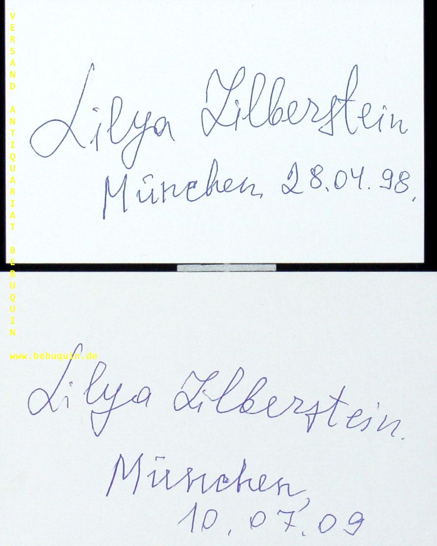 ZILLBERSTEIN, Lilya (Pianistin): 2 eigenhändig signierte und datierte Autogrammkarten. München (Philharmonie), 1998 + 2009. 8 x 12,5 cm 2 Karteikarten. Lilya Zilberstein (* 19. April 1965 in Moskau) ist eine russische Pianistin, die in Wien lebt. (Wikipedia)