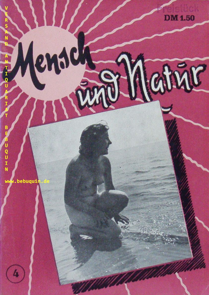 FKK.– MENSCH UND NATUR.– 2. Jg. Heft 4. Stuttgart (Knothe), 1950. 48 S. mit zahlr. Bildtafeln von Nackten. ill. OKart.. Ecken gering bestoßen, sonst gut erhalten.