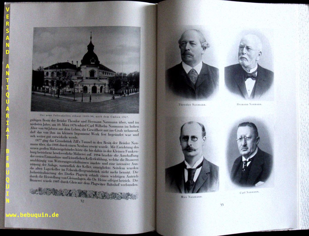 LEIPZIG.– NAUMANN, Carl W.: Brauerei C.W. Naumann Aktiengesellchaft in Leipzig Plagwitz 1828 – 1928. Zum hundersten Geburtstag. Leipzig (Scholtze), 1928. 4°. 44 S. mit zahlr. Bildern. farb. ill. OKart. tadellos.