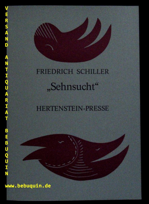 PRESSENDRUCKE.– SCHILLER, Friedrich: „Sehnsucht“. Pforzheim (Hertenstein-Presse), 1983. Fol. 8 Bl. mit 4 farb. Linolschnitten von Axel Hertenstein. ill. OKart. tadellos. Nr. 7 von 40 numerierten und vom Künstler signierten Ex. der Vorzugsausgabe mit einem numerierten und signierten Linolschnitt beiliegend.