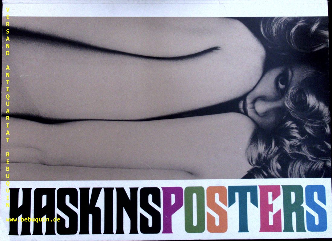 HASKINS, Sam: Posters. Zürich (Dielsdorf), 1972. 48 x 35 cm. 32 Bl. mit 31 zumeist farb. Bildtafeln + 1 Textseite. farb. ill. OKart. eine Ecke leicht gestaucht Ausgabe der Normalausgabe mit der eigenhändigen Signatur von Haskins am Druckvermerk. Sam Haskins, geboren als Samuel Joseph Haskins (* 11. November 1926 in Kroonstad, Oranje-Freistaat; † 26. November 2009, in Bowral, Australien) war ein südafrikanischer Fotograf. Insbesondere sein Beitrag zur Aktfotografie, seine Fotomontagen und seine Bücher machten ihn bekannt; Cowboy Kate (1965) und Haskins Posters (1973) sind seine wohl wichtigsten Bände.