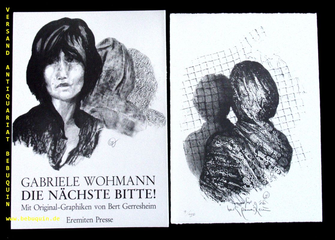 EREMITEN-PRESSE.– WOHMANN, Gabriele: Die Nächste, bitte! Erzählung. Düsseldorf (Eremiten-Presse), 1978. 4°. 24 S. mit farb. Offsetlithos von Bert Gerresheim. ill. OKart. tadellos.