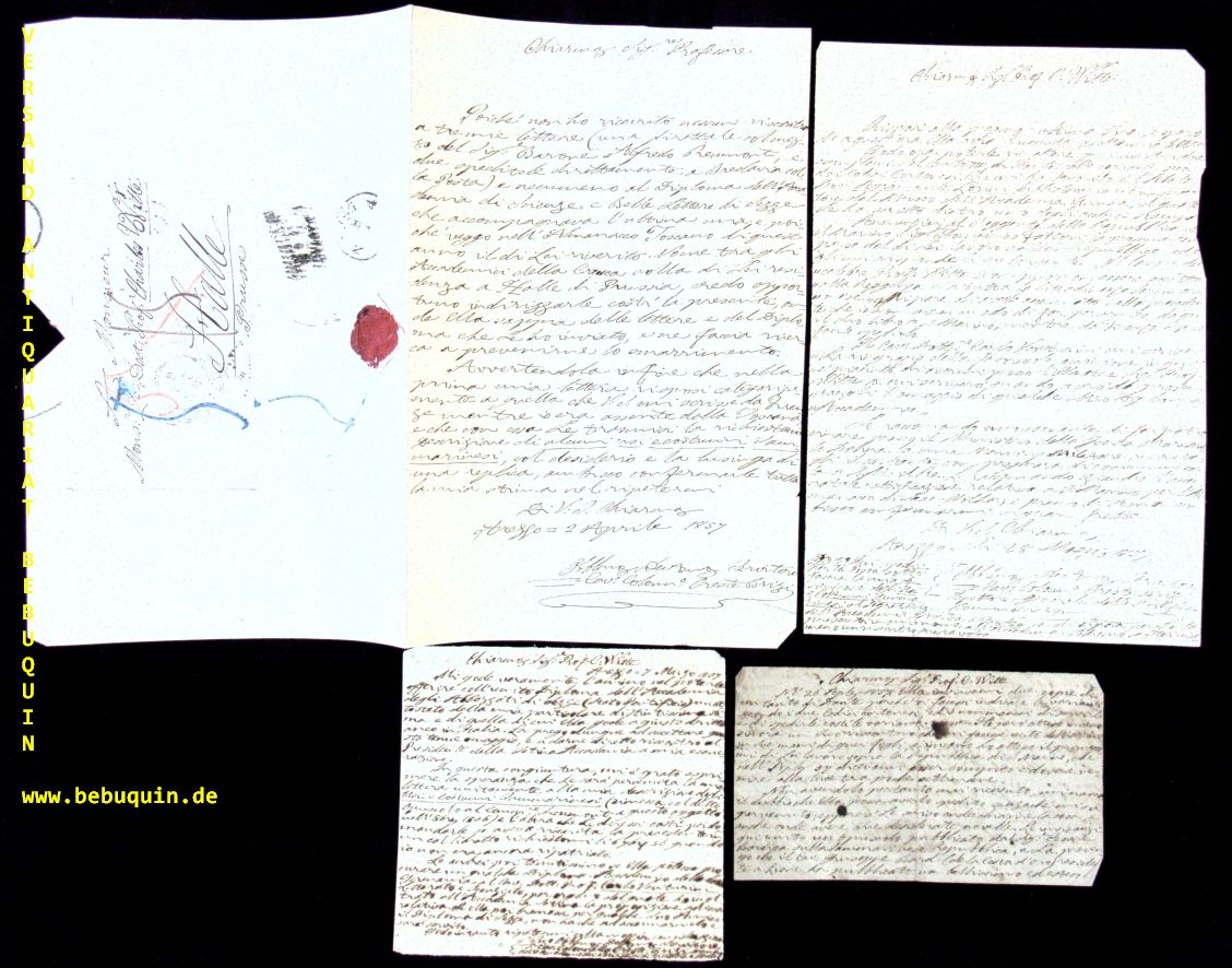 BRIZI, Oreste: 3 eigenhändige, voll signierte und teils postalisch gelaufene Briefe an den Rechtsprofessor Karl Witte in Halle. (Italien), 1857/58. unterschiedliche Formate. 3 Briefe und Beiblätter. normales Zeitkolorit, der gelaufene Brief von feiner Erhaltung. Karl Witte wurde mit 14 Doktor der Philosophie in Gießen und war Begründer der Dante-Gesellschaft. (Kosch 3415)