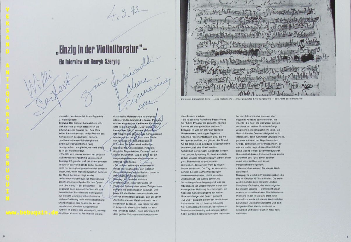 SZERYNG, eigenhändig signiertes und datiertes Programmheft: Willi Seifert zur f