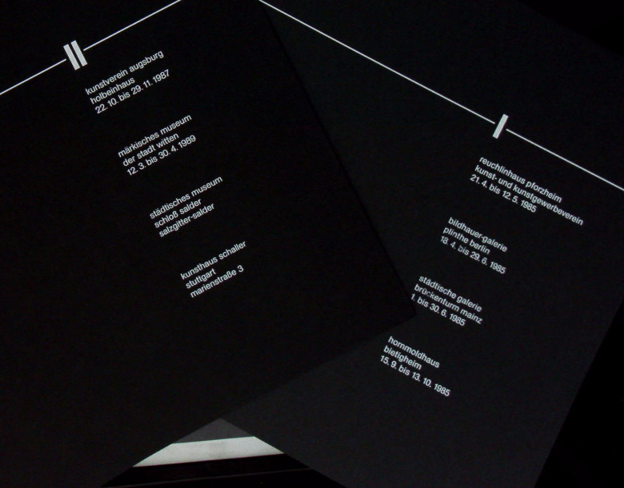 BECK, Gerlinde: Raumchoreografie. Skulptur, Malerei, Zeichnung, Konzept, Klangstraße. Arbeiten von 1972 bis 1985. 2 Bände und 1 Schallplatte. Pforzheim (Reuchlinhaus), 1985. 31 x 31 cm. ca 150 S. + 1 Schallplatte. OKart in OSchuber gutes Ex.