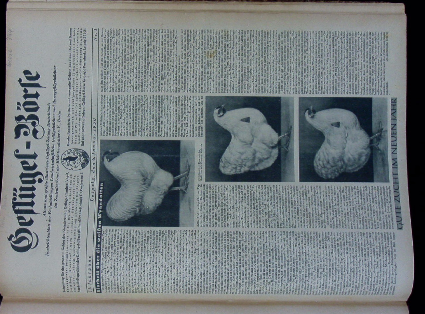 ORNITHOLOGIE.– GEFLÜGEL-BÖRSE.– Illustriertes Magazin für Tierfreunde und Kleintierzucht. Offizielles Organ des Bundes Deutscher Rassegeflügelzüchter und der Fach- und Landesverbände. Nr. 1 – 24 in 1 Bd. Leipzig, 1950. Fol. 96 S. mit zahlr. Abb. HLn der Zeit. WaV, sonst feine Erhaltung dieses absolut sensiblen Titels. Von großer Seltenheit.