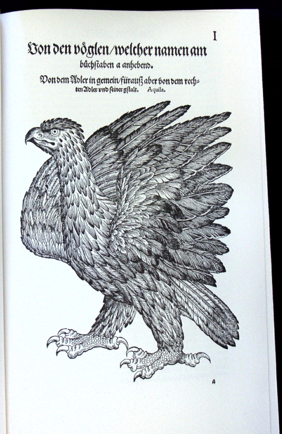 ORNITHOLOGIE.– GESSNER, Conrad: Vogelbuch. Darin[n] die art, natur vnd eigenschafft aller vöglen, sampt jrer waren Contrafactur, angezeigt wirt: allen Liebhaberen der künsten, Artzeten, Maleren, Goldschmiden, Bildschnitzeren, Seydenstickern, Weydleiiten vnd Köchen, nit allein lustig zu erfaren, sunder gantz nutzlich vnd dienstlich zebrauchen. Faks. der Ausg. Zürych, Christoffel Froschouer, 1557. Dietikon-Zürich (Stocker-Schmid), 1969. Folio. CCLXIII Bl., 24 S. mit zahlr. Ill. Original-Halbpergament, mit Titel und Vignette in rot auf Buchrücken. Einband gering angeschmutzt, sonst sehr feines Ex. Nr. 350 von 385 numerierte Ex. auf Ingres Büttenpapier der Hahnemühle Dassel. Mit einem synoptischen Verzeichnis von Gessners lateinischen und deutschen Vogelbezeichnungen und ihren modernen wiss. Synonymen, mit 316 Vogelformen, davon 182 genauer beschrieben mit Abbildungen.
