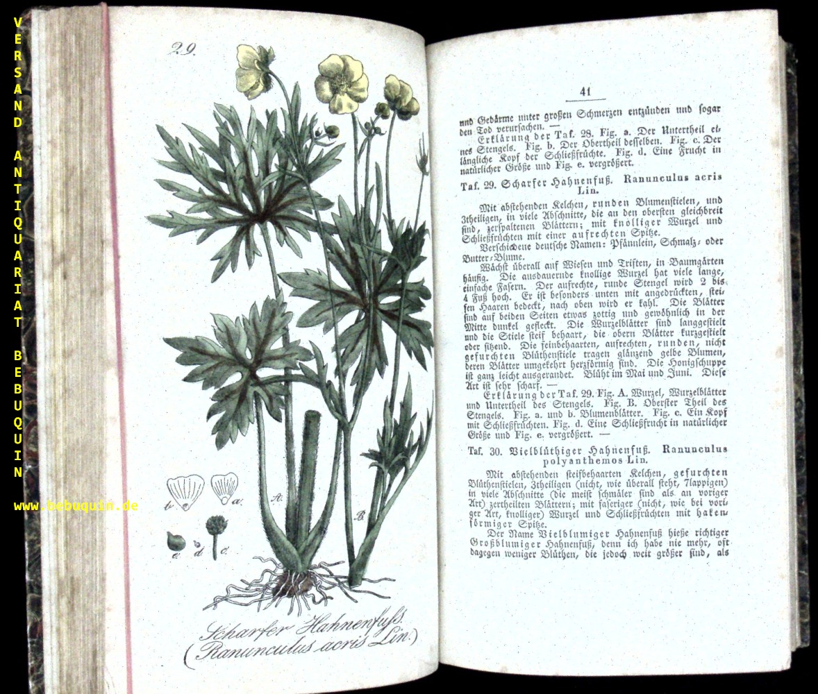 BOTANIK.– WINKLER, Eduard: Sämmtliche Giftgewächse Deutschlands. Naturgetreu dargestellt und allgemein faßlich beschrieben. Mit einer Vorrede von Fr. Schwägrichen. Zweite Auflage. Berlin (Natorff). 1832. [2] Bl., II, XI, 119 S. mit 95 Tafeln colorirter Abbildungen. HLdr der Zeit. Rücken etwas fleckig, sonst nur am Schnitt bestaubt, insgesamt gutes Ex.