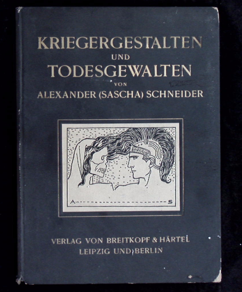 MAY.– SCHNEIDER, Sascha: Kriegergestalten und Todesgewalten. Einführung von Ludwig Volkmann. Leipzig/Berlin (Breitkopf & Härtel), 1915. 4°. 3 Bl., 24 Bildtafeln, 4 S. mit Abb. OPb mit mont. Bild. Ecken und Kanten teils berieben.