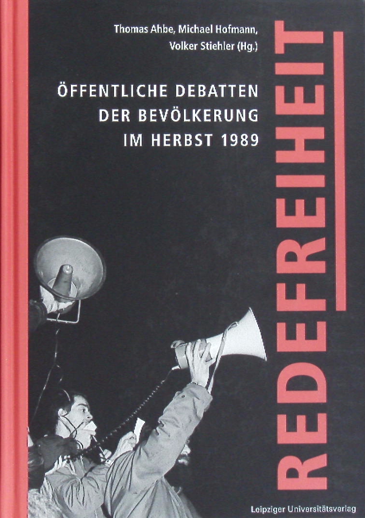 LEIPZIG.– AHBE, Thomas; STIEHLER, Volker; HOFMANN, Michael: (Hrsg.) Redefreiheit. Öffentliche Debatten der Leipziger Bevölkerung im Oktober und November 1989 – Problemwahrnehmungen und Lösungsvorstellungen aus der Mitte der Gesellschaft. Leipzig (Leipziger Universität), 2014. Gr. 8°. 750 S. mit zahlr. Abb. ill. OPb. tadellos. EA.