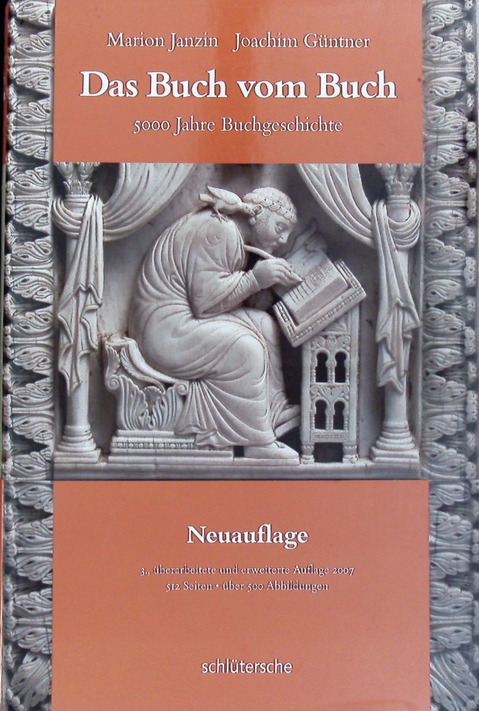 JANZIN, Marion: Das Buch vom Buch. 5000 Jahre Buchgeschichte. 3., überarb. und erw. Aufl. Hannover (Schlütersche), 2007. Fol. 512 S. mit zahlr. teils farb. Abb. OLn mit OUmschl. mit Bauchbinde. gutes Ex.