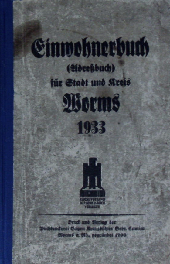 EINWOHNERBUCH FÜR STADT UND KREIS WORMS 1933.–