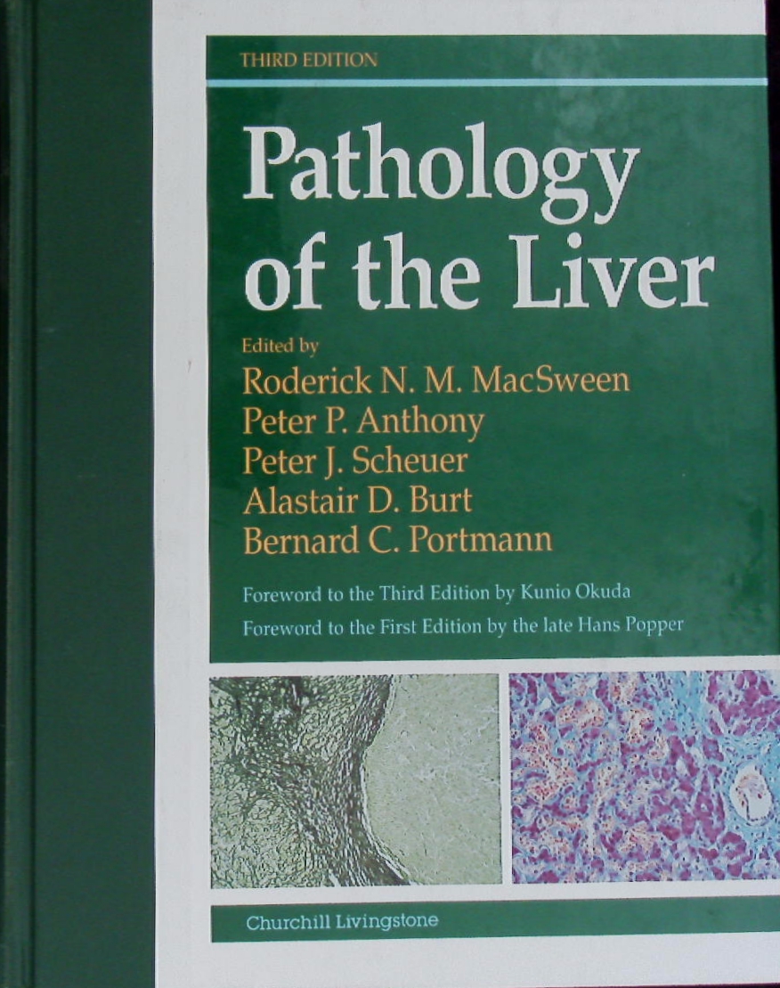 MEDIZIN.– MACSWEEN / ANTHONY / SCHEUER / BURT / PORTMANN: Pathology of the liver. 3. ed., reprinted. Edinburgh (Churchill Livingstone), 1994 [erschienen] 1995. 4°. XII, 816 S. mit sehr vielen Bildern. farb. ill. OHLn. NaV, feines Ex.