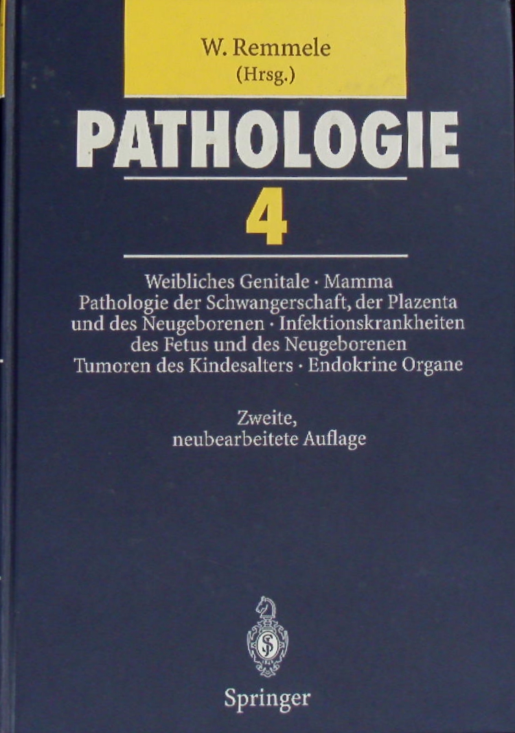 MEDIZIN.– BÄSSLER / BÖCKER / DIETEL / HARMS u.a.: Weibliches Genitale, Mamma, Pathologie der Schwangerschaft, der Plazenta und des Neugeborenen, Infektionskrankheiten des Fetus und des Neugeborenen, Tumoren des Kindesalters, Endokrine Organe. 2., neubearbeite Auflage. Berlin/Heidelberg (Springer), 1997. 4°. 733 S. mit 282 Abb. in 585 Einzeldarstellungen und 155 Tabellen. OPb. gutes Ex. = Pathologie. Ein Lehr- und Nachschlagebuch / hrsg. von W. Remmele, 4. Band.