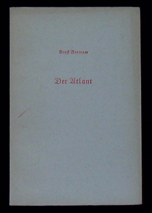 BERTRAM, Ernst: Der Atlant. Donauwörth (Auer), 1951. Oktav. 13 S. OKart. gutes Ex. 1 von 1000 Ex. der EA. WG² 46.