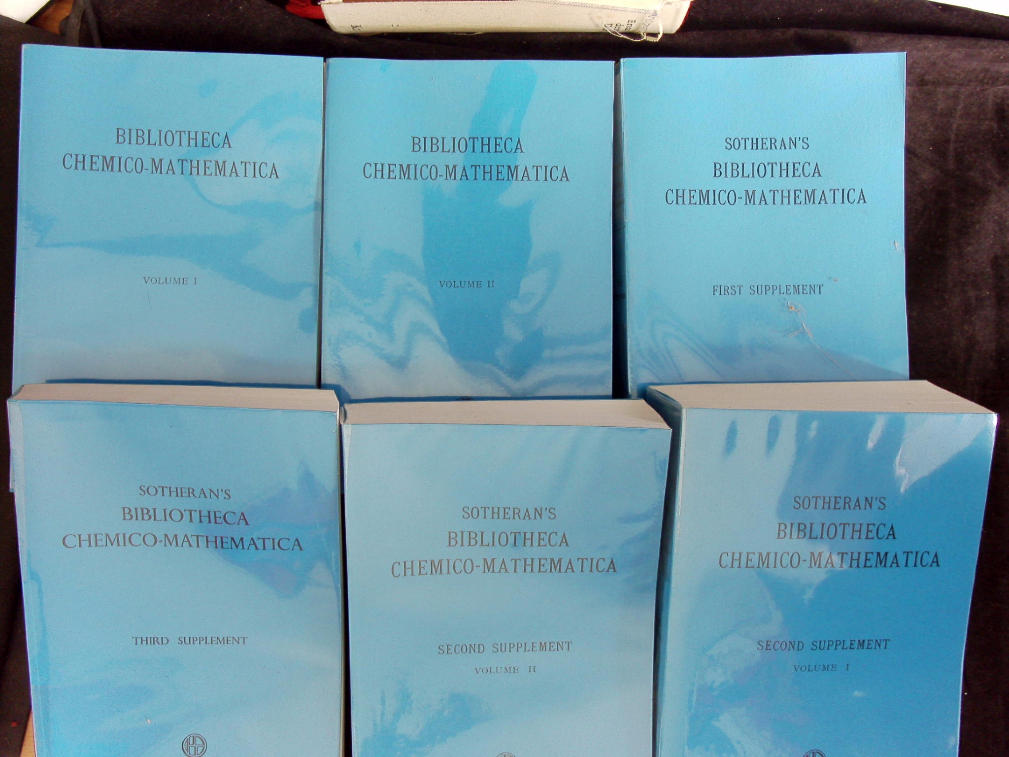 CHEMIE.– SOTHERAN + ZEITLINGER: Bibliotheca Chemico-Mathematica. Catalogue of Works in many Tongues on Exact and Applied Science Reprint de l éd. de Londres, 1921 et des trois suppléments, 1932, 1937 et 1952. 6 Bände. München (Reprint), 1980. 428, 429-964, 496, 840 , 841-1396, 442 S. OKart. feines Ex. Die Spezialbibliographie zum Fach mit über 50000 Buchbeschreibungen, die oft durchaus detailliert sind.