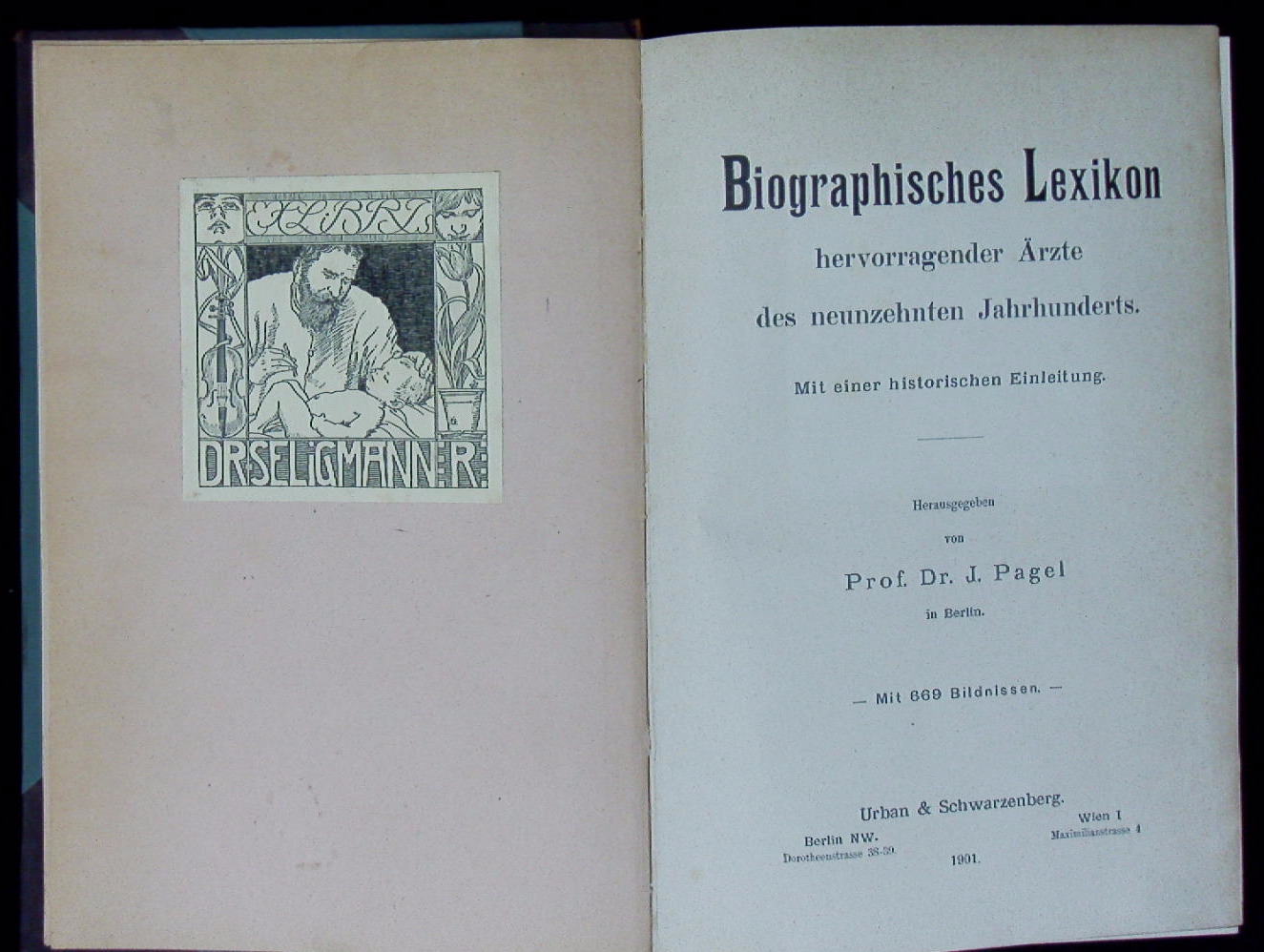 MEDIZIN.– PAGEL, Julius Leopold: Biographisches Lexikon hervorragender Aerzte des neunzehnten Jahrhunderts. Mit 1 historischen Einleitung. Berlin/Wien (Urban & Schwarzenberg), 1901. Gr. 8°. XXXIII, 1984 Spalten mit 669 Bildnissen. OHLdr mit goldgeprägtem Rücken. Rücken etwas geblichen, Ex libris auf Innendeckel. EA.