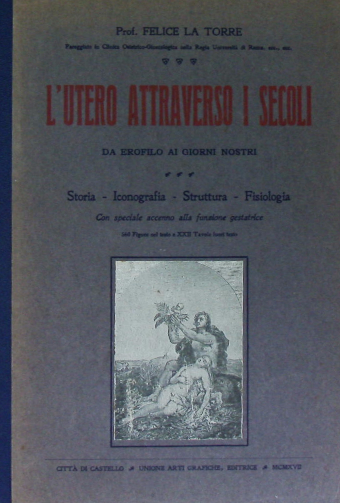 MEDIZIN.– LA TORRE, Felice: L’ utero attraverso i secoli. Da Erofilo ai giorni nostri. Storia, iconografia, struttura, fisiologia. Con speciale acceno alla funzione gestatrice. Città di Castello (Unione Arti Grafiche), 1917. Gr. 4°. XX, 831 S. mit zahlr. Abb. ill. OHLdr. Vorsätze kaum fleckig, sonst feines Ex. EA.