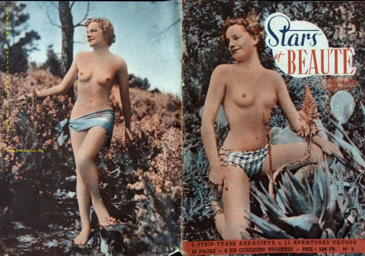 EROTIK.– STARS ET BEAUTE.– Affichage Autorisé. No. 3. Paris (Art Photographique), ca 1940. Gr. 8°. 22 Bl. mit zahlr. teils farb. fotografischen Bildern von unbekleideten Menschen. farb. ill. OBr. gut erhalten. Das exakte Erscheinungsjahr war von mir nicht zu ermitteln.