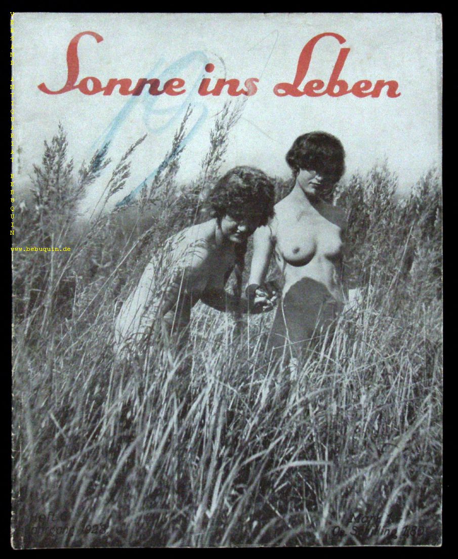 FKK.– SONNE INS LEBEN.– Heft Nr. 6. Egestorf (Laurer), 1928. 4°. 28 S. (incl. Umschlag) mit zahlr. fotografischen Bildern mit unbekleideten Menschen. ill. OKart. Vorderdeckel leicht bekritzelt. EA. „Sonne ins Leben” erschien unter diesem Titel von Januar bis Juni 1928, ab Juli 1928 wurde die Zeitschrift wieder unter ihrem alten Titel „Lachendes Leben” herausgegeben. (FKK-Museum)