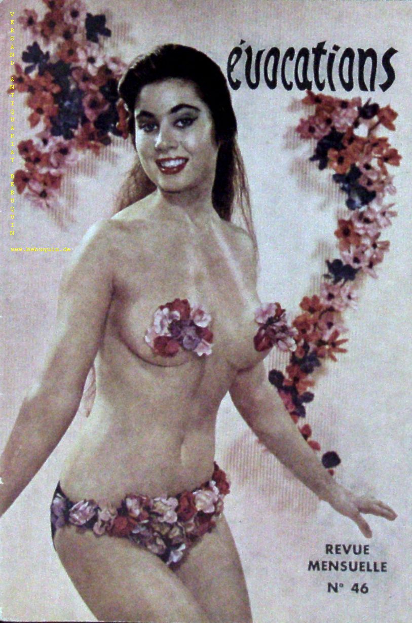 EROTIK.– EVOCATIONS.– No. 46. Revue Mensuelle. Paris, ca 1950. 16 Bl. mit zahlr. fotografischen Bildern. farb. ill. OBr. gutes Ex. EA.