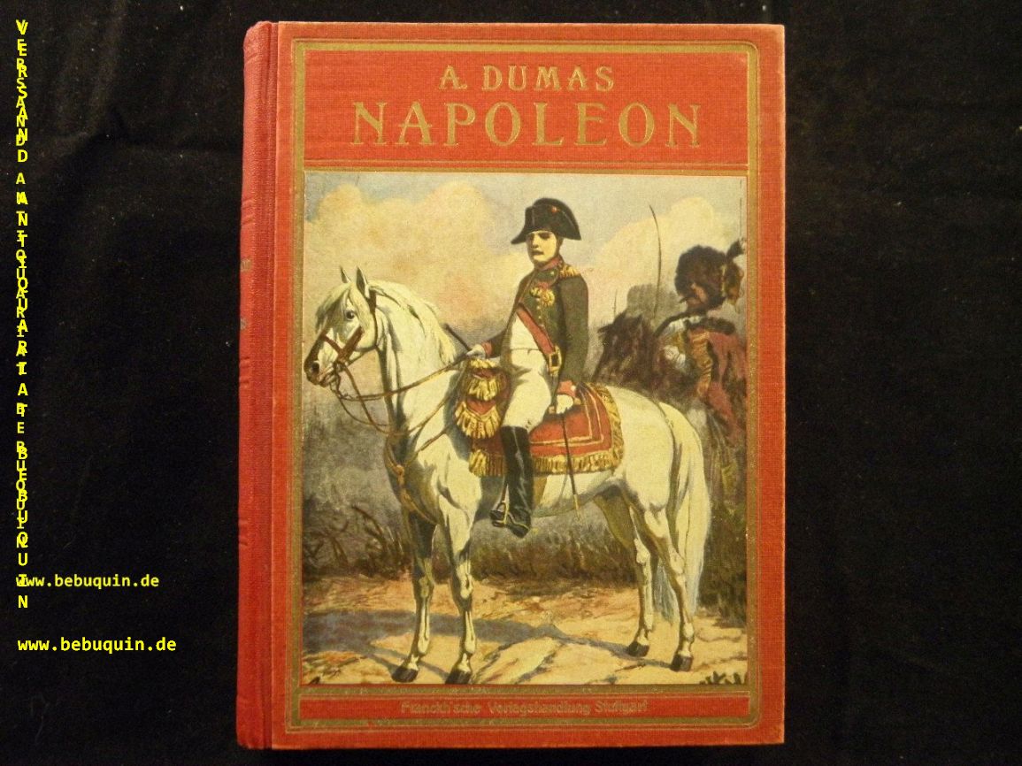 DUMAS, Alexander: Napoleon Bonaparte. D.v. Heinrich Elsner. Neubearb. von Max Pannwitz. Stuttgart (Franckh’sche), ca 1920. 196 S., 8 Bl. mit vielen Illustrationen. OHLn mit mont. Farbbild. feines Ex. 1. Aufl. dieser Ausgabe.