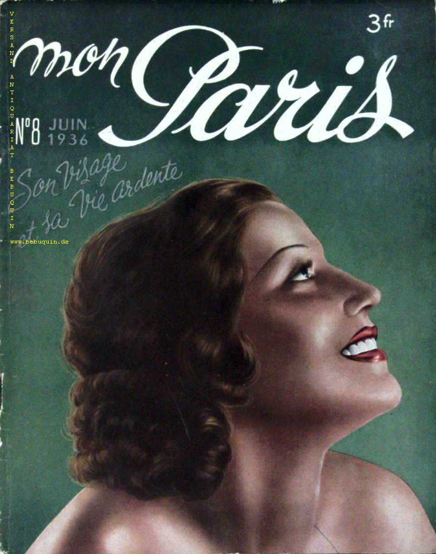 EROTIK.– MON PARIS.– 1936. No 8. Revue mensuelle. Paris (Henri Francois), 1936. 4°. ca 50 S. mit zahlr. fotografischen Bildern von zumeist unbekleideten Menschen. farb. ill. OKart. feines Ex. EA.