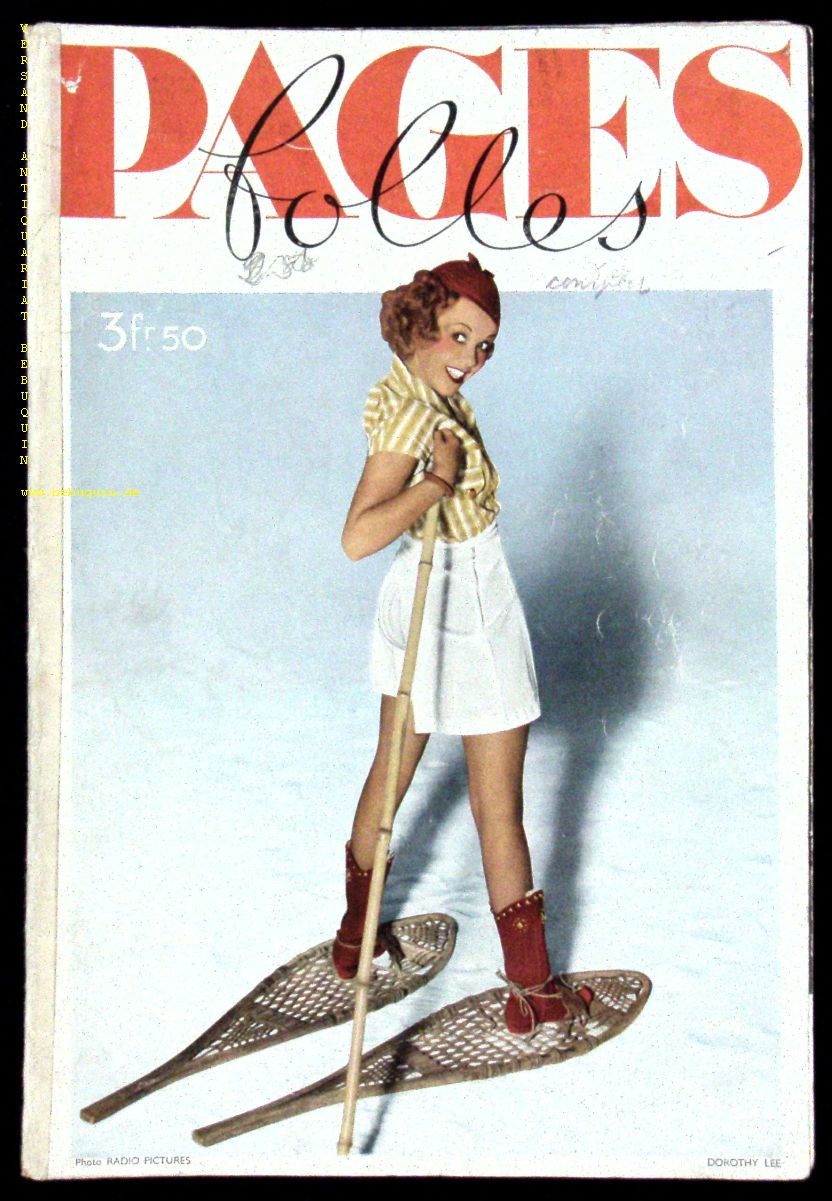 EROTIK.– PAGES FOLLES.– 1940. No. 8. Revue mensuelle. Paris (Kadar). 1940. 4°. ca 40 S. mit zahlr. fotografischen Bildern von zumeist unbekleideten Menschen. farb. ill. OKart. erstes Werbeblatt fehlt, Heftung gelockert. EA mit einem Artikel von Josephine Baker.