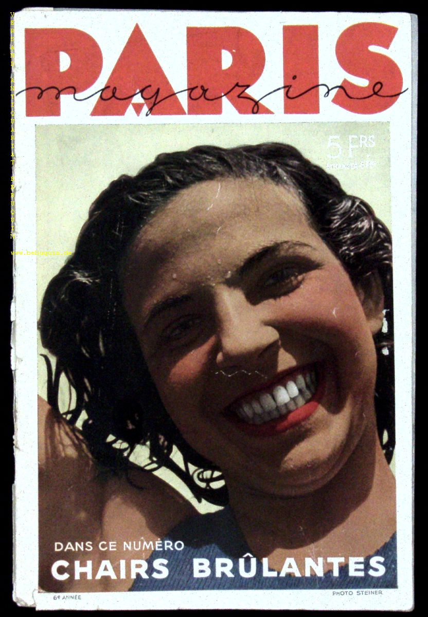 EROTIK.– PARIS MAGAZINE.– 1936. No. 61. Revue mensuelle. Paris (Rue de Ponceau), 1936. 4°. ca 60 S. mit zahlr. fotografischen Bildern von zumeist unbekleideten Menschen. farb. ill. OKart. Vorderdeckel lose. EA.