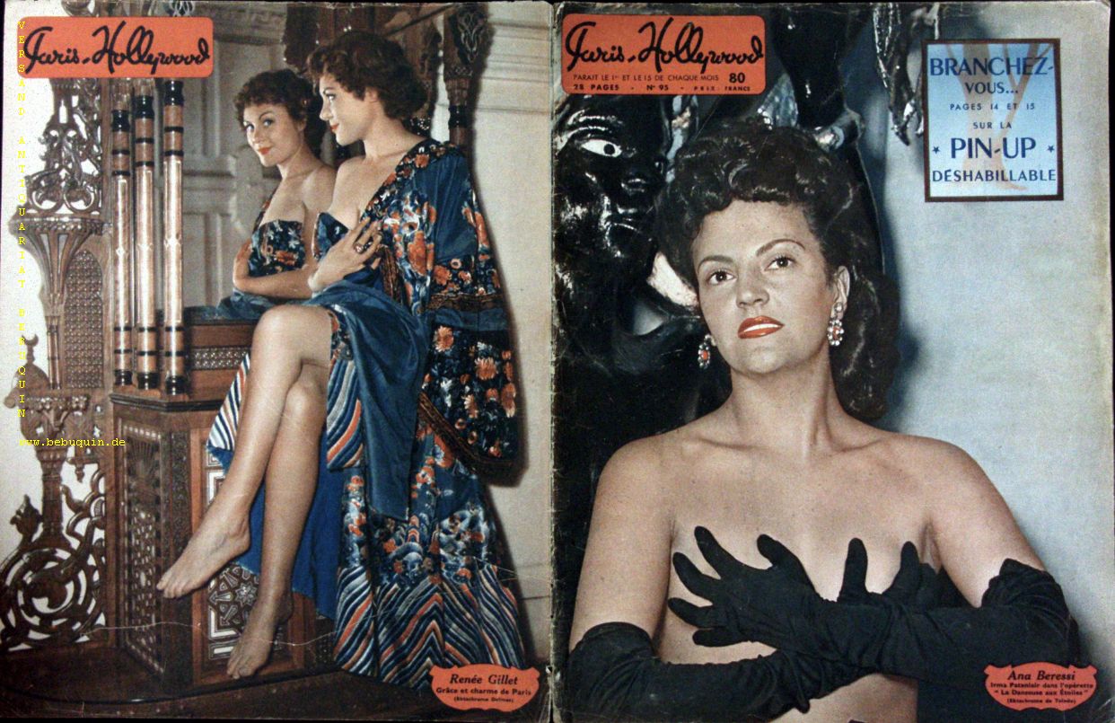EROTIK.– PARIS HOLLYWOOD.– No. 095. Paris, 1950. Gr. 4°. 12 Bl. mit teils farb. Fotografien unbekleideter Frauen. farb. ill. OBr. gutes Ex. EA.