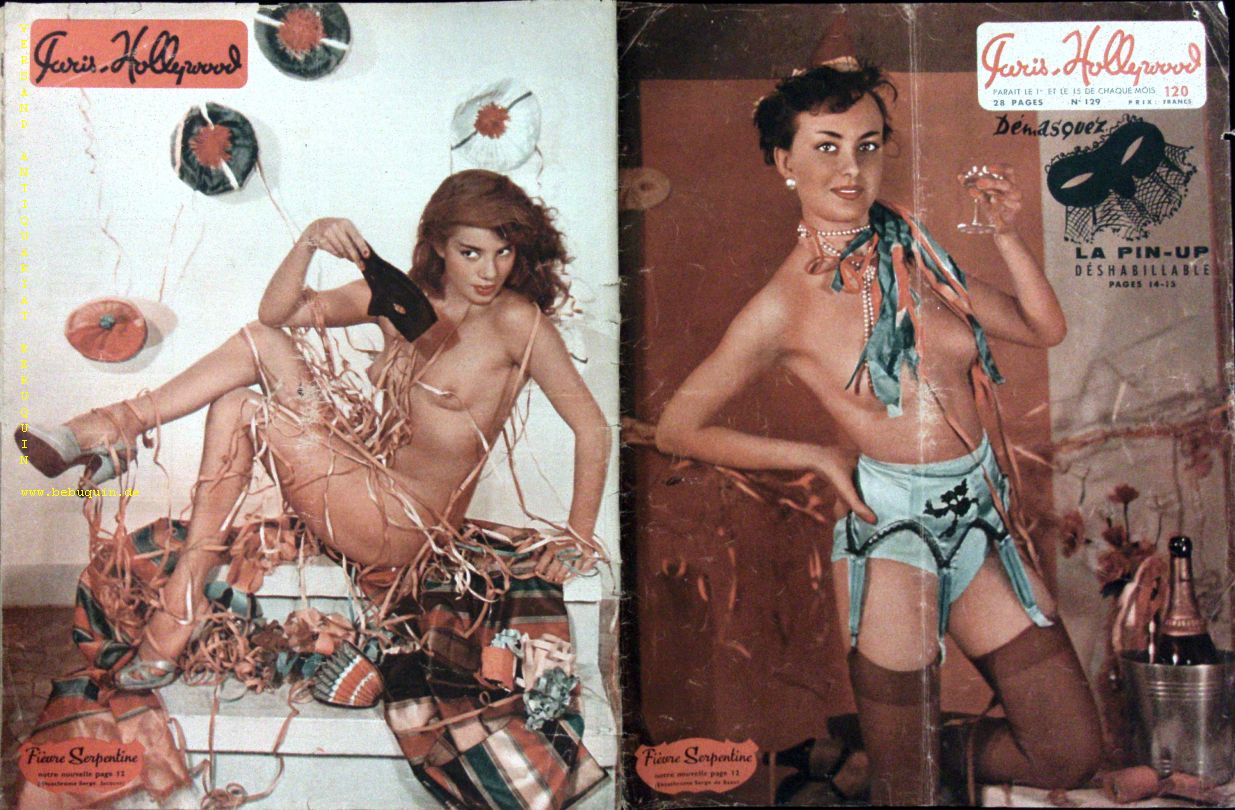 EROTIK.– FOLIES DE PARIS ET DE HOLLYWOOD.– No. 129. Paris, 1957. Gr. 4°. 28 S. mit teils farb. Fotografien unbekleideter Frauen. farb. ill. OBr. Kanten bestoßen, Deckelbild mit mittiger Knickspur. EA.