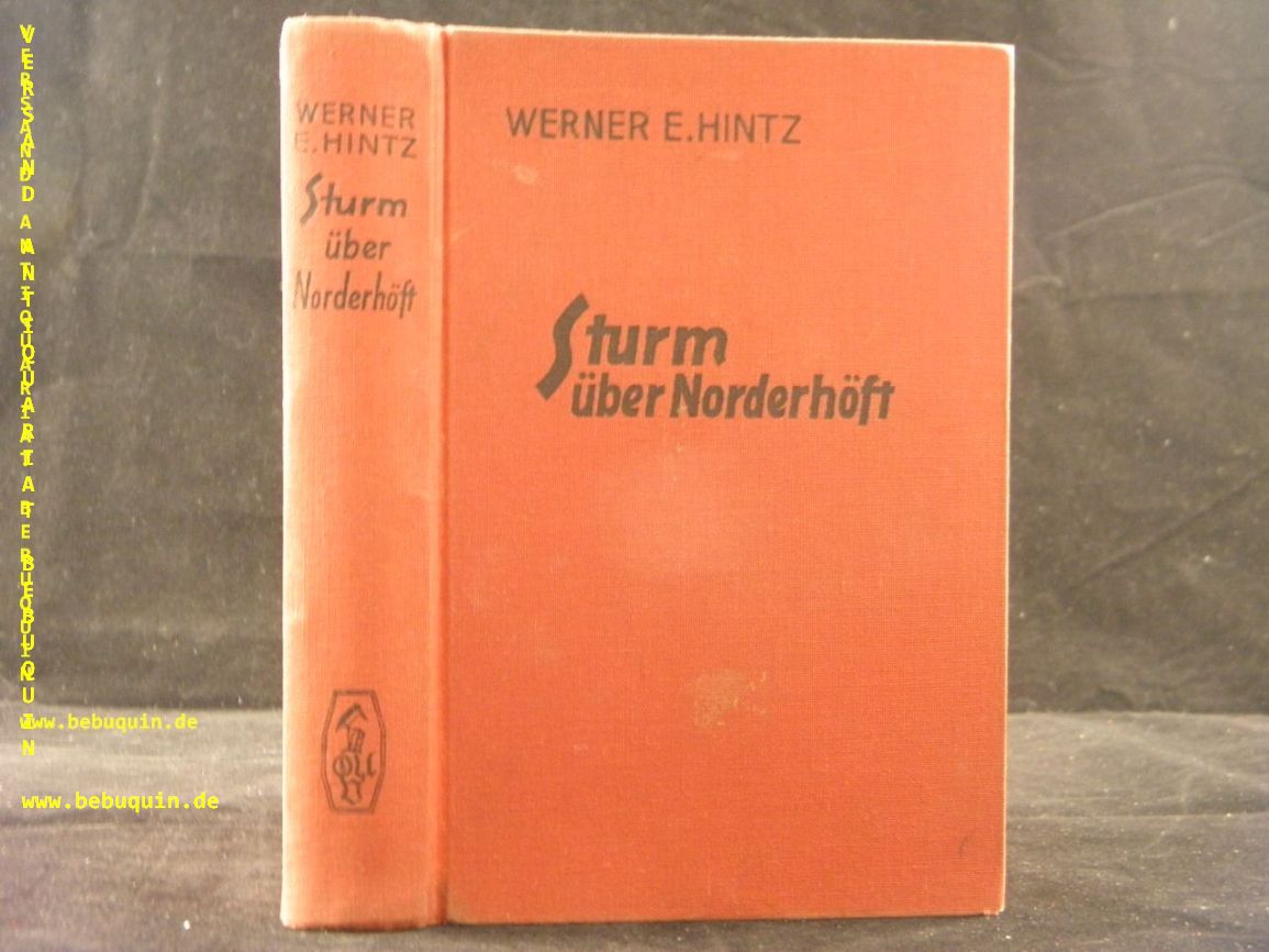 HINTZ, Werner E.: Sturm über Norderhöft. Kriminalroman. Berlin (Otto Uhlmann), (1938). 255 S. OLn . NaT, gutes Ex. = Uhlmann – Bücher. EA des seltenen Krimis. (Schädel 3479)
