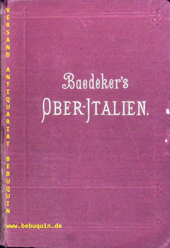 BAEDEKER.– ITALIEN.– Handbuch für Reisende. Erster Teil: Ober-Italien, Ligurien, das nördliche Toskana. 15. Aufl. Leipzig (Baedeker), 1898. LXVI, 556 S. mit 25 Karten, 30 Plänen und 5 Grundrissen. OLn. Rücken geblichen. BK D369.