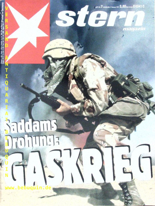 SADDAM HUSSEIN.– STERN MAGAZIN.– 44. Jahrgang. Nummer 7. Hamburg (Nannen), 1991. Gr. 4°. 170 S. mit teils farb. Bildern. ill. OBr. Mit Berichten über „Saddams Chemiewaffen.“