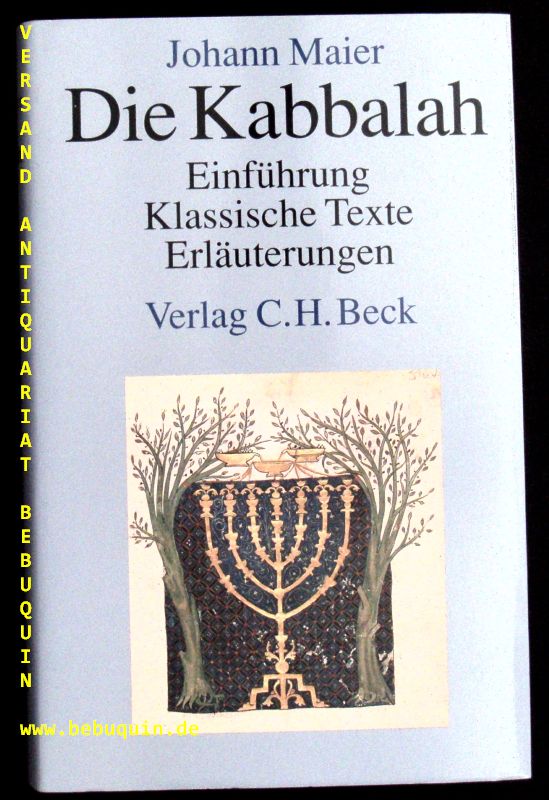 JUDAIKA.– MAIER, Johann: Die Kabbalah. Einführung – klassische Texte – Erläuterungen. München (Beck), 1995. Gr. 8°. 416 S. mit zahlr. Abb. OLn mit OUmschl. tadellos. EA.