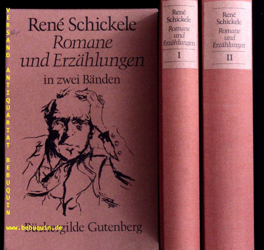 SCHICKELE, René: Romane und Erzählungen. 2 Bände. Frankfurt (Büchergilde Gutenberg), 1983. Oktav. 390, 565 S. OLn in OSchuber. tadellos. 1. Aufl. dieser Ausgabe.