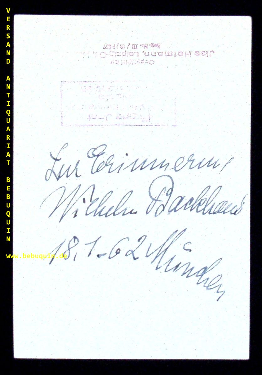 BACKHAUS, Wilhelm (Pianist): eigenhändig auf der Rückseite signiertes und datiertes Foto von Ilse Hofmann. München 17.1.1962. 14,5 x 10 cm. 1 Blatt. Wilhelm Backhaus (* 26. März 1884 in Leipzig; † 5. Juli 1969 in Villach, Österreich) war ein deutscher Pianist. Er gilt als einer der bedeutendsten Pianisten des 20. Jahrhunderts. (Wikipedia)