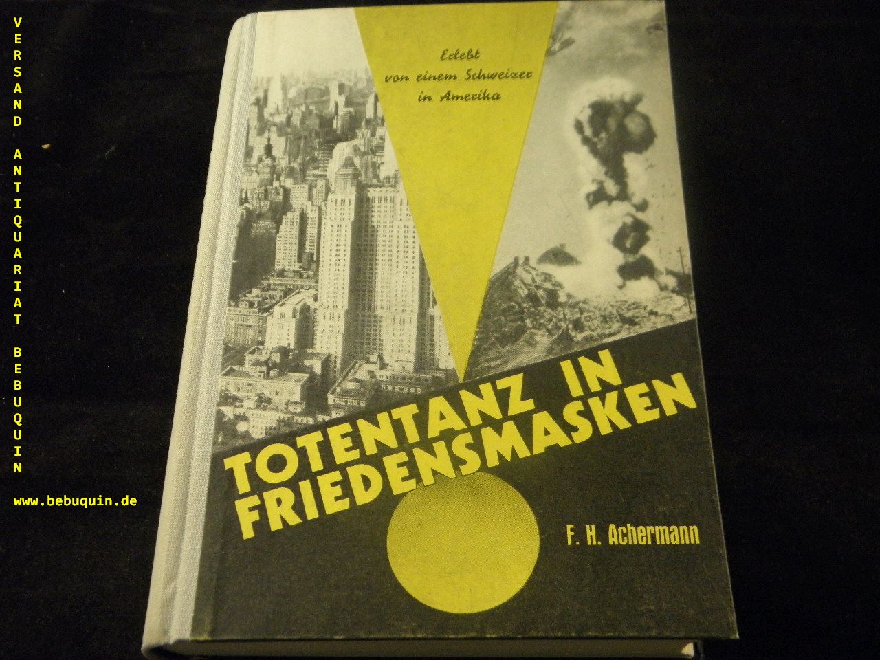 ACHERMANN, Franz Heinrich: Totentanz in Friedensmasken. Erlebt von einem Schweizer in Amerika. 1. Aufl. Baden (Buchdruckerei), 1936. 226 (1) S. ill. OHLn. mit Archivstempel wie neu. EA. Seltener Titel des als Schweizer Karl May bezeichneten Schriftstellers.