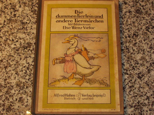 WENZ-VIETOR.– DIE DUMMEN TIERLEIN UND ANDERE TIERMÄRCHEN. 2. Aufl. Leipzig (Hahn), ca 1930. Gr. 8°. 38 S. mit zahlr. Textbildern + 3 farb. Tafeln von Else Wenz-Vietor. farb. ill. OHLn. etwas fingerfleckig, an den Ecken leicht bestoßen, insgesamt gutes Ex. = Die bunten Bücher, Bd. 3. vergleiche Alfter 46.