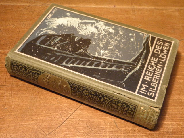 MAY, Karl: Im Reiche des silbernen Löwen. III. Band. Reiseerzählung. 59.– 73. Tsd. Radebeul (Karl May), ca 1925. 636 S. mit roten Vorsatzpapieren. farb. ill. OHLn. etwas schief gelesen, Kanten leicht berieben, goldglänzender Rücken. = Gesammelte Werke, Bd. 28. Hermesmeier / Schmalz GW 28.12.